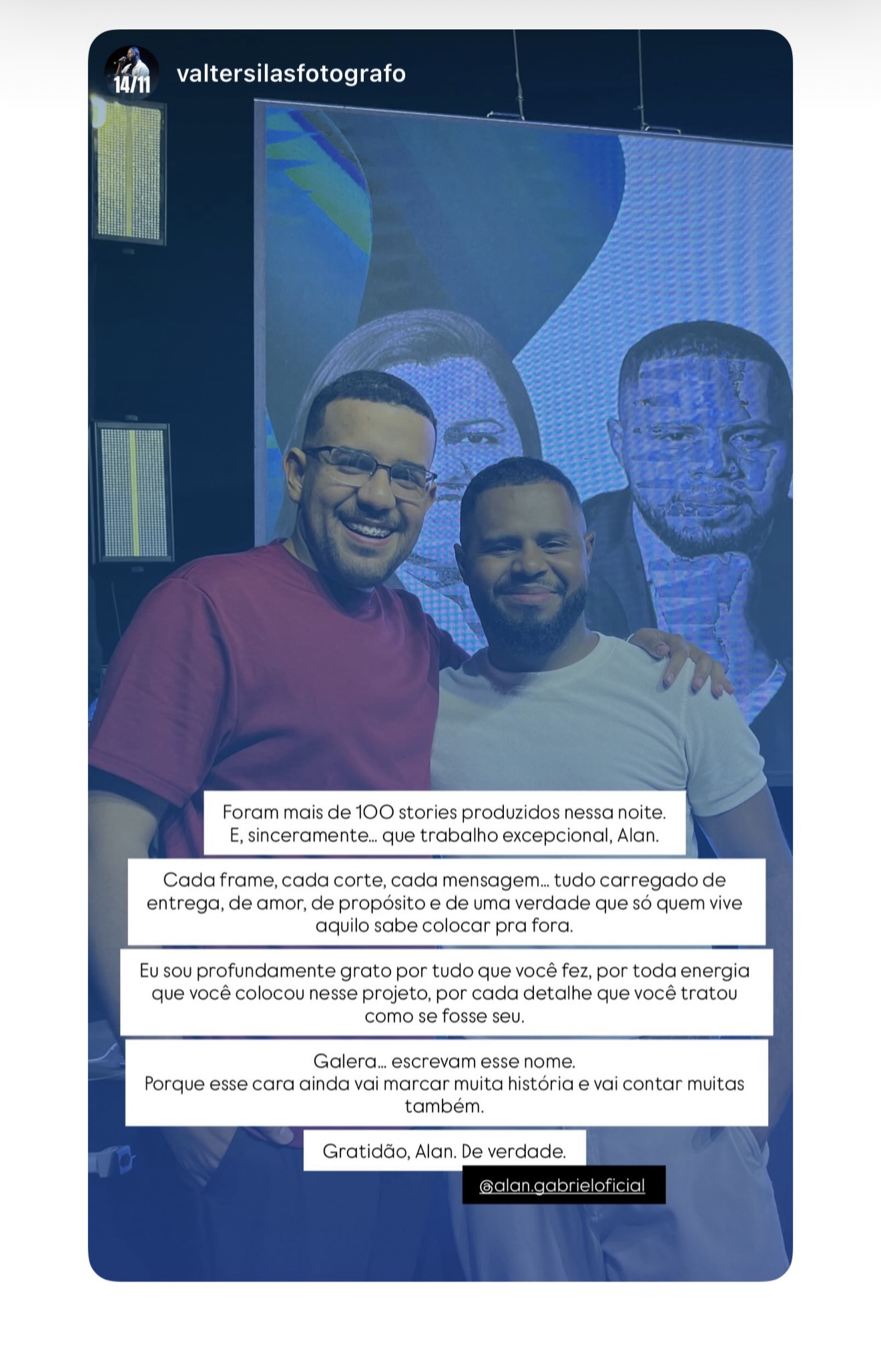 Sua marca merece mais do que vídeos bonitos — merece estratégia, impacto e resultado. A Alan Gabriel transforma ideias em narrativas visuais que geram conexão, autoridade e conversão. Cada projeto é pensado para destacar sua essência, valorizar sua imagem e comunicar com clareza, seja em vídeos institucionais, conteúdos para redes sociais ou produções comerciais.